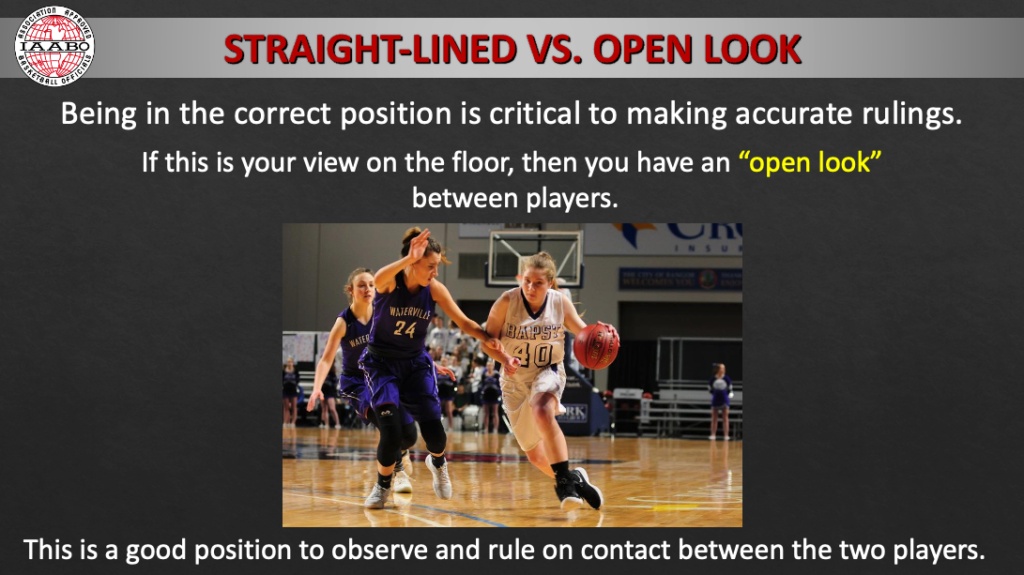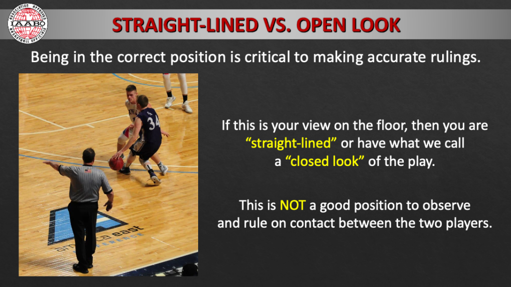 Some of us have become content to have a straight-lined look at some plays. We always need to be trying to get an open look. Having an open look increases the number of accurate rulings that we make.